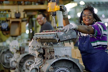 UAW member Ethel M. Coleman assembles truck engines at Navistar