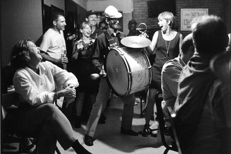 at Joe's Cozy Corner in New Orleans, locals and tourists respond to the heart stopping syncopation of "Uncle" Lionel Batiste's bass drum